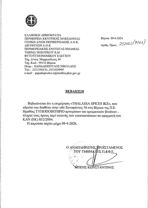 Thalassa spices е гръцка компания със седалище във Верия Иматия в Централна Македония.